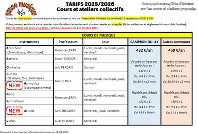 Tarif réduit pour les habitants de Campbon et Quilly grâce aux subventions des communes.