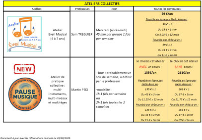 Selon l'instrument, et sur décision du professeur, il peut vous être proposé de jouer à plusieurs (ex: deux élèves ensemble auront 40 min).